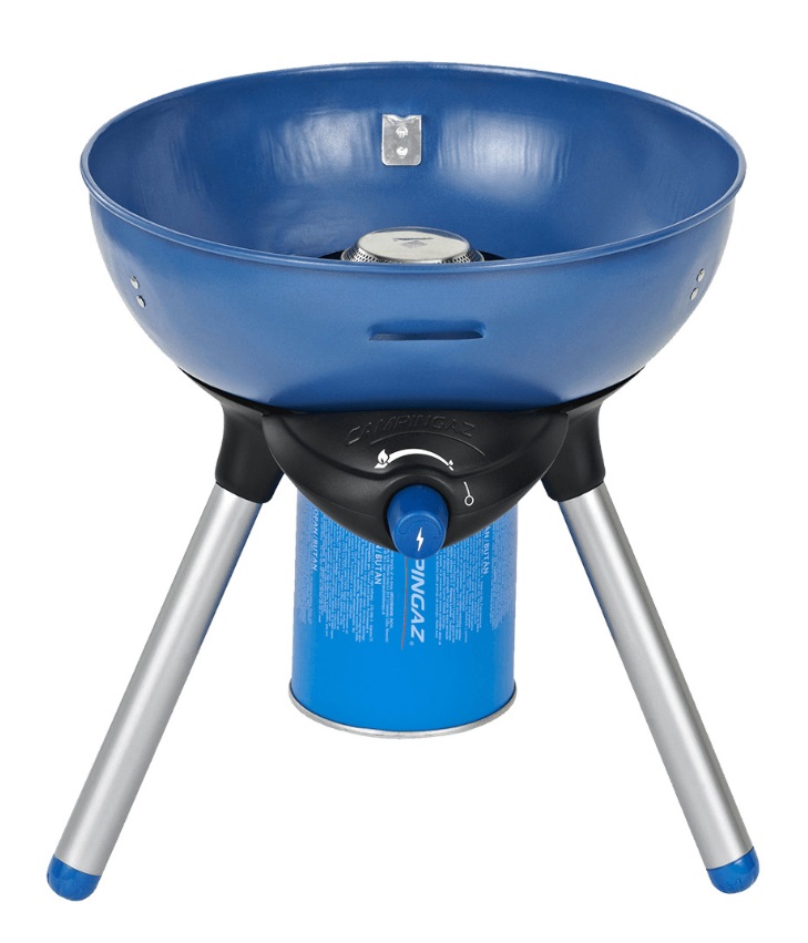 Party Grill od firmy Campingaz. Díky odnímatelným nohám a uzamykatelnému víku ho lze snadno přepravovat a skladovat. Jako palivo pro vaření slouží kartuše Campingaz CV Plus, která může být odpojena a znovu připojena, díky šroubovacímu samouzavíracímu ventilu. Piezzo zapalování vám umožňuje snadné zapálení.